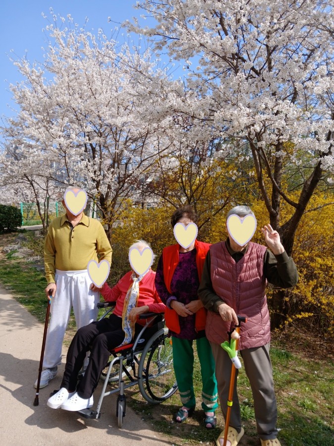요양원 어르신들께서 지역사회에서 진행하는 벗꽃 행사에 참여하셨습니다.